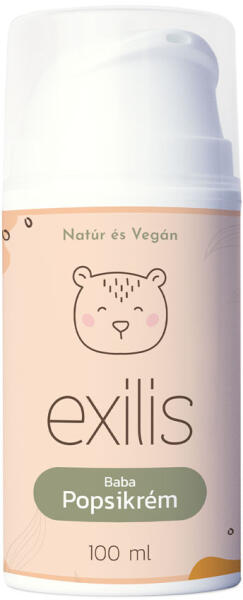 Az Exilis Baba Popsikrém összetevői úgy lettek összeválogatva, hogy az maximálisan igazodjon a babák érzékeny bőréhez és a lehető legnagyobb védelmet nyújtsa csak természetes módon. Segít elkerülni és kezelni a pelenkakiütéseket, kipirosodást, illetve a fogzás idején hígabb és megnövekedett székletmennyiség esetén is teljes körű védelmet nyújt a babapopsi érzékeny bőrének. Cink oxiddal szívja a nedvességet, Shea vajjal hidratál, édesgyökér kivonattal gátolja a gyulladást, glicerinnel puhít, D-pantenollal és E-vitaminnal táplálja a bőrt. Kőolajszármazékot és színezéket sem tartalmaz. Összetevők: Aqua, Zn Oxid, Glyceryl Stearate and Ceteareth-20 and Ceteareth-12 and Cetearyl Alcohol and Cetyl Palmitate, Glycerin, Vitis Vinifera Seed Oil, Butyrospermum Parkii Butter, Cera Alba, Glyceryl Stearate, Cetyl Alcohol, Glycerin and Glycyrrhiza Glabra Root Extract, Phenoxyethanol and Ethylhexylglycerine, Panthenol, Tocopheryl Acetate, Xanthan Gum, Parfum